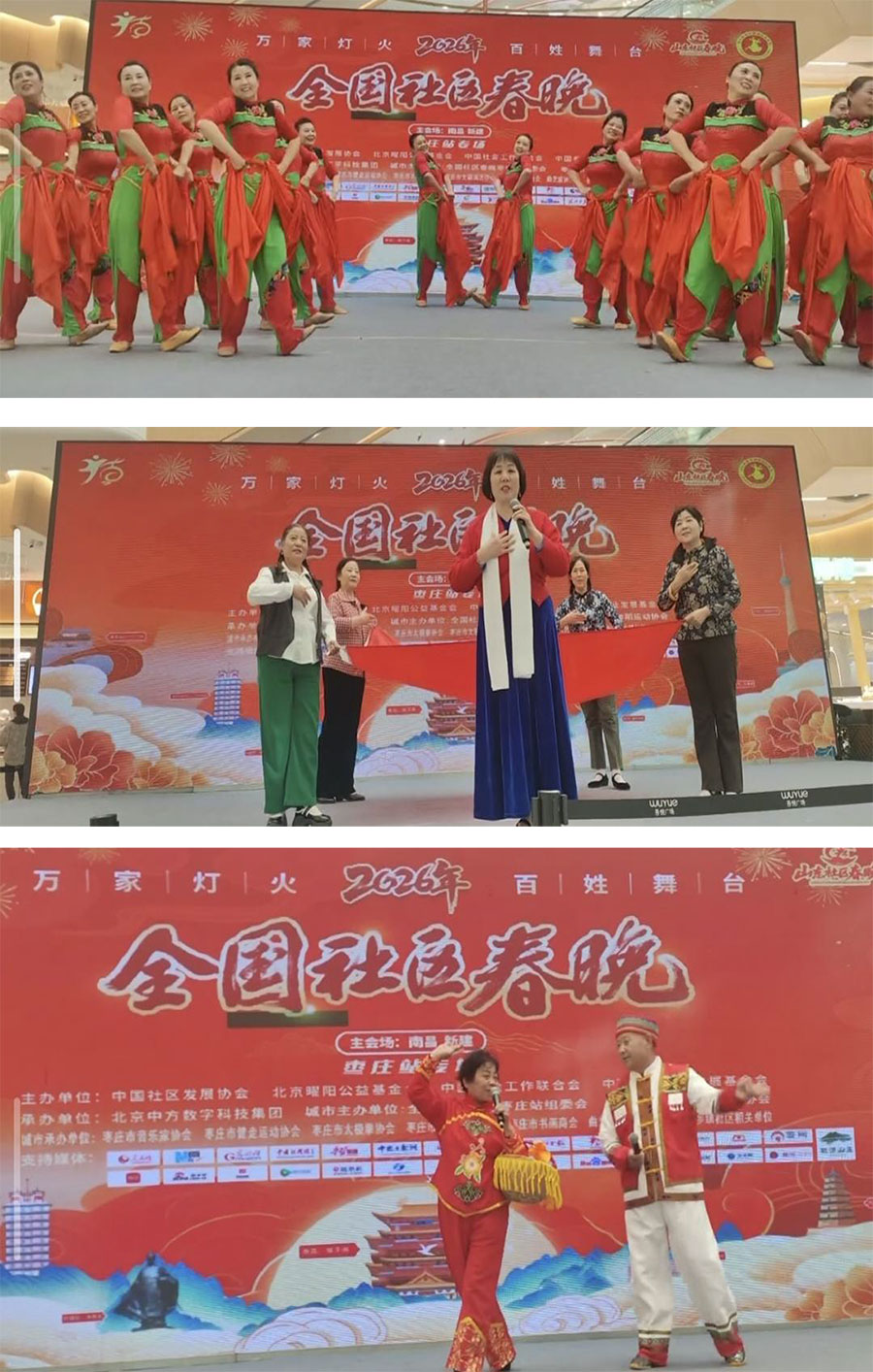 主持人詳細介紹了今年的活動主題“萬家燈火、幸福家園”。“2026全國社區春晚”作為一項全國性的社區群眾文化品牌活動,由中國社區發展協會、北京曜陽公益基金會、中國社會工作聯合會、中國老齡事業發展基金會聯合主辦,由中方數字科技集團有限公司承辦,棗莊站由全國社區春晚棗莊站組委會、棗莊市體育舞蹈運動協會主辦、棗莊市音樂家協會、棗莊市健走運動協會、棗莊市太極拳協會、棗莊書畫商會、棗莊曲藝家協會及滕州市廣場舞協會等各街道、鄉鎮社區相關單位共同協辦。