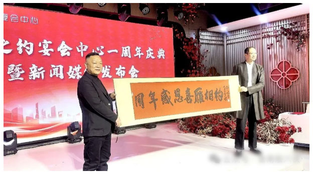 文化賦能,情誼綿長。書法家邵明岳先生現場揮毫贈禮,一幅《周年感恩、喜雁相約》的書法作品墨香四溢,既飽含著對喜雁之約宴會中心的美好祝愿,也為發布會增添了濃厚的文化底蘊,贏得全場嘉賓的嘖嘖稱贊。