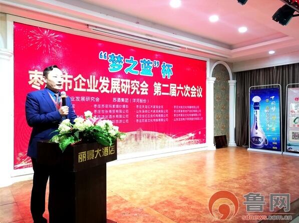 張宗帥秘書長在致辭時(shí)說,首先感謝蘇酒集團(tuán)對本次會(huì)議給予大力支持和贊助;同時(shí)也感謝蘇菲瑪索婚紗攝影總經(jīng)理武連輝、棗莊銀河珠寶總經(jīng)理孫海燕、山東龍旭電子商務(wù)股份有限公司董事長蔣東升、棗莊佳億五金機(jī)電有限公司總經(jīng)理、正泰電工棗莊地區(qū)運(yùn)營中心總經(jīng)理李偉、棗莊鴻達(dá)酒水有限公司總經(jīng)理張利、棗莊恒大御府等都給予支持。并介紹了2019年工作計(jì)劃,一、擬在適當(dāng)時(shí)間召開首界企業(yè)發(fā)展高峰論壇。論壇主題根據(jù)企業(yè)發(fā)展迫切課題選定,準(zhǔn)備成立全市各區(qū)域分支機(jī)構(gòu)。二、下半年針對企業(yè)發(fā)展中最突出的問題,組織開展調(diào)研工作。調(diào)研采取現(xiàn)場指導(dǎo)與座談的形式,不定期舉辦企業(yè)沙龍活動(dòng),企業(yè)培訓(xùn)活動(dòng)。三、組織開展《企業(yè)年鑒》編輯工作。成立編輯委員會(huì),集中精力編好首部企業(yè)年鑒。四、進(jìn)一步拓寬區(qū)域企業(yè)發(fā)展研究渠道和視野,組織企業(yè)文化發(fā)展較好和績優(yōu)的企業(yè)深入開展課題研究工作。并爭取課題論文進(jìn)入棗莊最高學(xué)術(shù)論壇及學(xué)術(shù)年會(huì)。五、充分發(fā)揮市企業(yè)發(fā)展研究會(huì)的橋梁和紐帶作用,積極聯(lián)系我會(huì)會(huì)員企業(yè)熱心人士,開展公益、扶貧救助幫扶活動(dòng)。