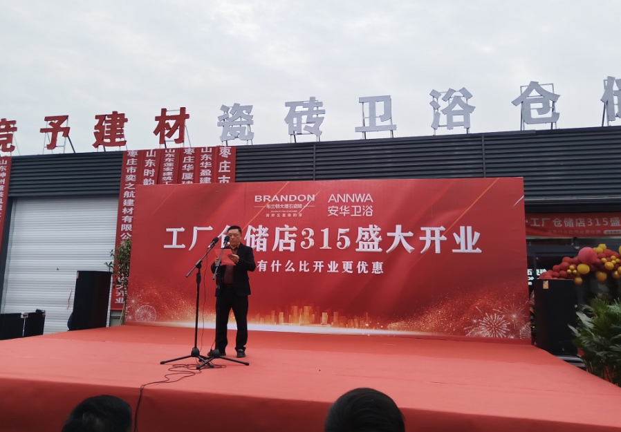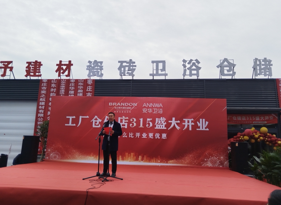 315消費者權益日這一天上午,在期待中,棗莊布蘭頓大理石瓷磚與安華衛浴攜手開啟新篇,盛大開業!出席活動的嘉賓有布蘭頓大理石瓷磚總經理羅偉樂、棗莊江西商會會長程祖紅、棗莊江西商會名譽會長程木全、棗莊安華衛浴布蘭頓大理石瓷磚總經理康玉洪等。這次開業不僅是兩家品牌拓展市場的重要里程碑,更是為廣大消費者帶來高品質家居建材與衛浴產品的福音,此次安華衛浴與布蘭頓大理石瓷磚的合作,旨在為棗莊的消費者提供一站式的家居建材購物體驗。據棗莊總經理康玉洪介紹,倉儲店擁有豐富的產品線,涵蓋了安華衛浴的各類潔具、浴室柜、水龍頭等產品,以及布蘭頓大理石瓷磚的多種規格和款式。
