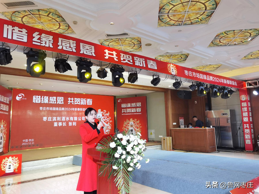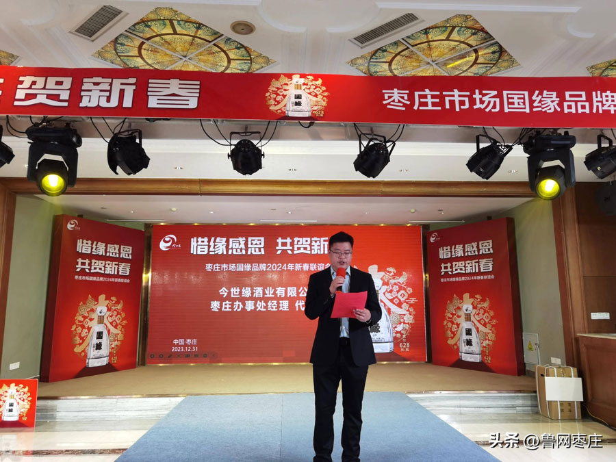 聯(lián)誼會上,首先由今世緣酒業(yè)銷售有限公司山東大區(qū)棗莊辦事處經(jīng)理代左生致辭并表示,很榮幸邀請到大家參與棗莊市場2024年新春聯(lián)誼會的活動中來。值此機(jī)會,我謹(jǐn)代表今世緣酒業(yè)向長期以來關(guān)心支持今世緣發(fā)展的合作伙伴們表示衷心的感謝和崇高的敬意!國緣品牌創(chuàng)牌20載以來,以“成大事,必有緣”的品牌主張,與大事結(jié)緣,同成功相伴,為英雄干杯。現(xiàn)已在江蘇省內(nèi)市場實(shí)現(xiàn)全覆蓋、高占有,熱銷態(tài)勢持續(xù)不減。在山東、上海、浙江、安徽等周邊省份及全國更廣泛區(qū)域?qū)崿F(xiàn)快速布局,成為今世緣全國化的明星產(chǎn)品。棗莊濱利酒水有限公司與今世緣酒業(yè)結(jié)緣以來,為棗莊市場今世緣·國緣產(chǎn)品的推廣、發(fā)展和品牌氛圍營造做出了突出的貢獻(xiàn),在此感謝棗莊濱利酒水有限公司的張總和劉總及其團(tuán)隊(duì)的辛勤付出。