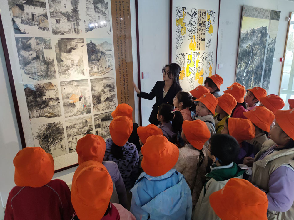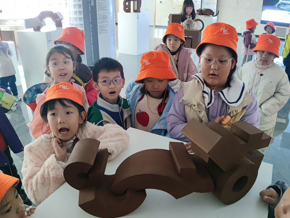 隨后,研學團來到市博物館。在朱林文字抽象雕塑展區,當代著名雕塑家朱林先生將抽象雕塑創作的思想和造型語言,深入淺出地給同學們作了講解,并鼓勵小朋友們多觀察、多創造,在少兒美術中心這所高品質藝術殿堂認真學習打下堅實基礎。并祝愿每一個小朋友都有一個愛畫畫的童年。